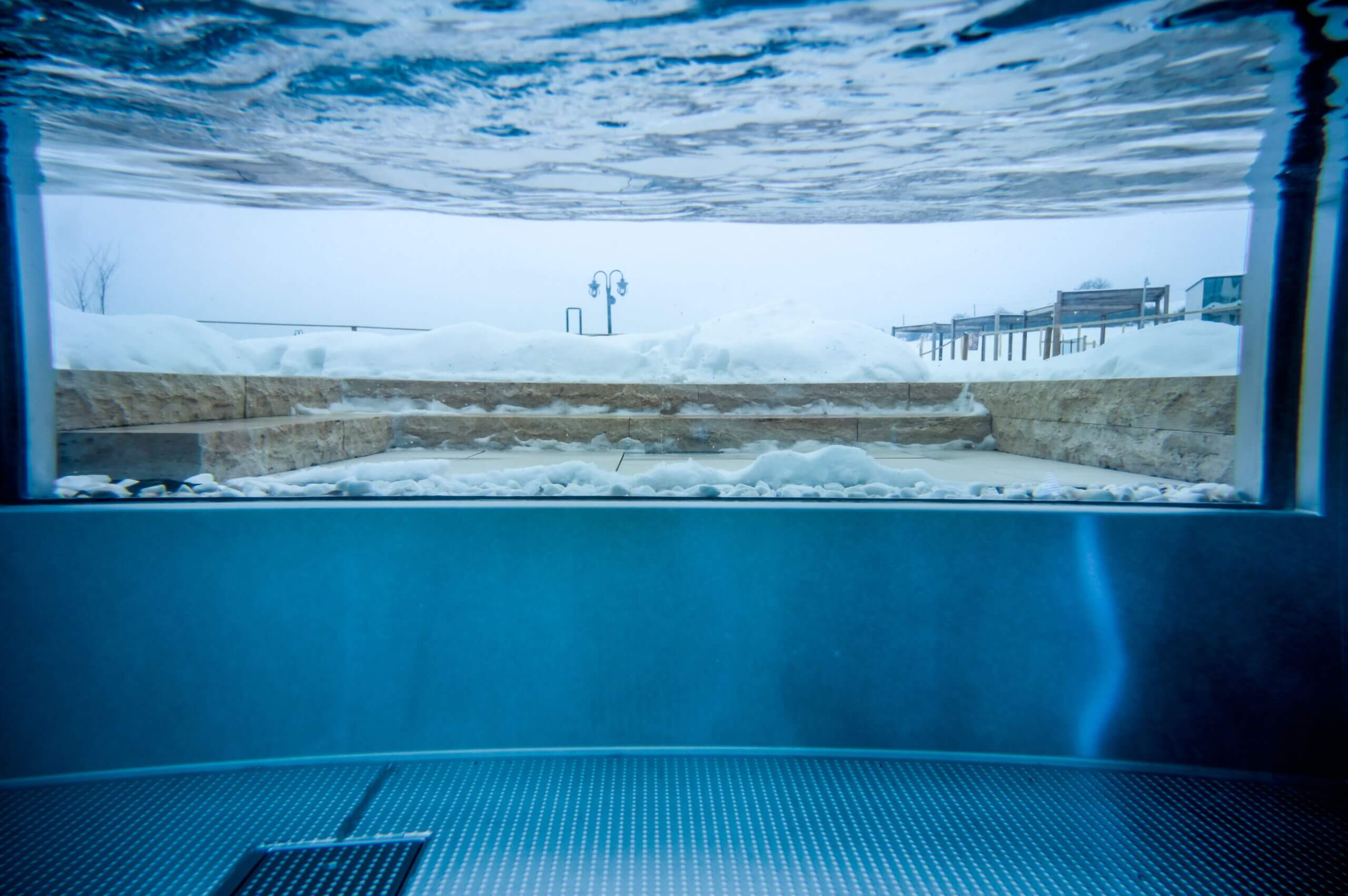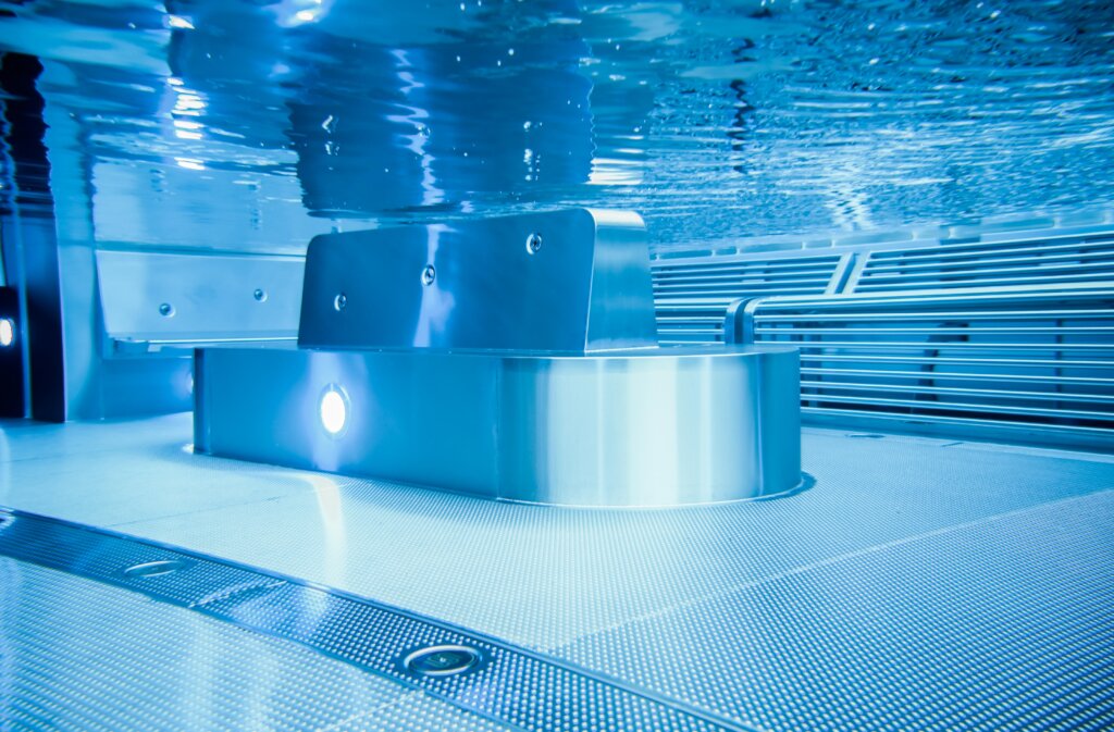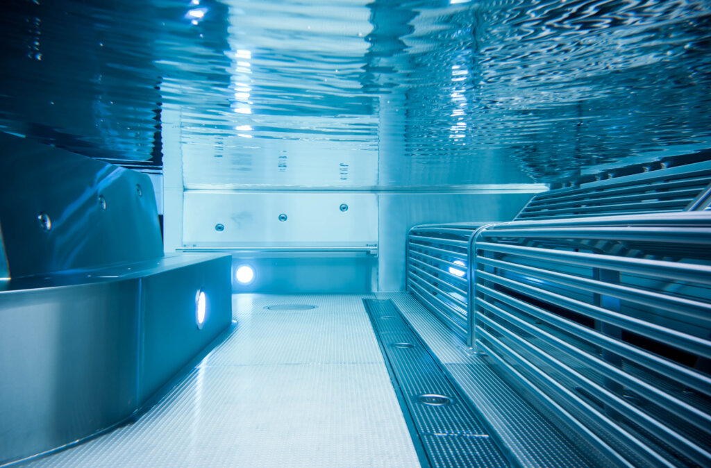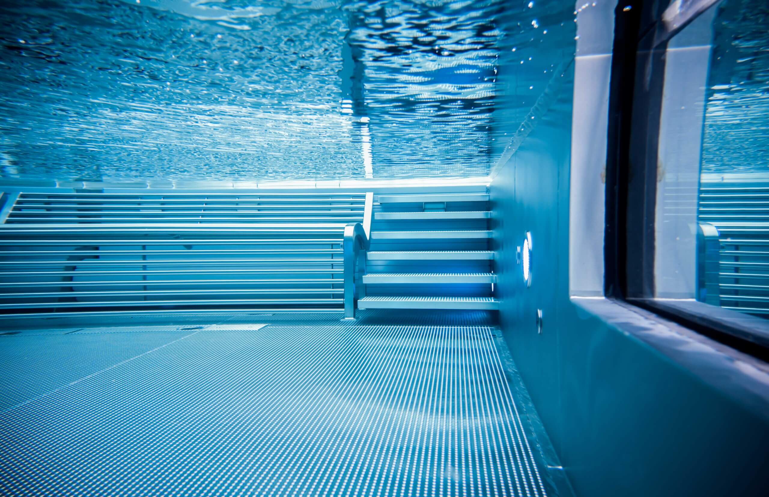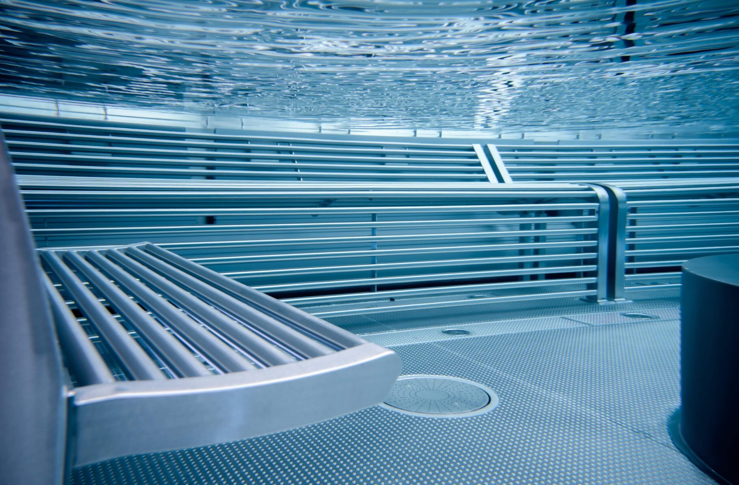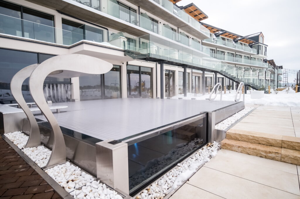 podhladinová PVC roleta skrytá pod ležadlom a schodiskom