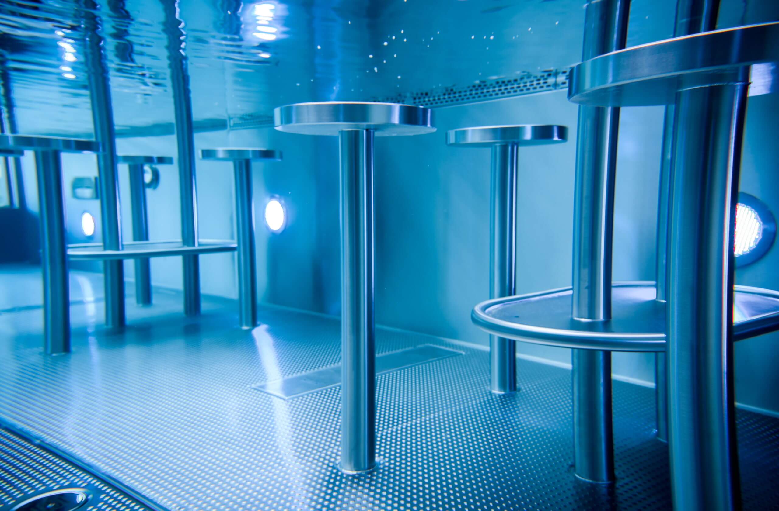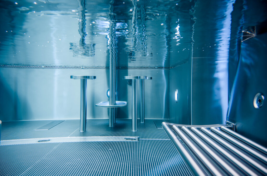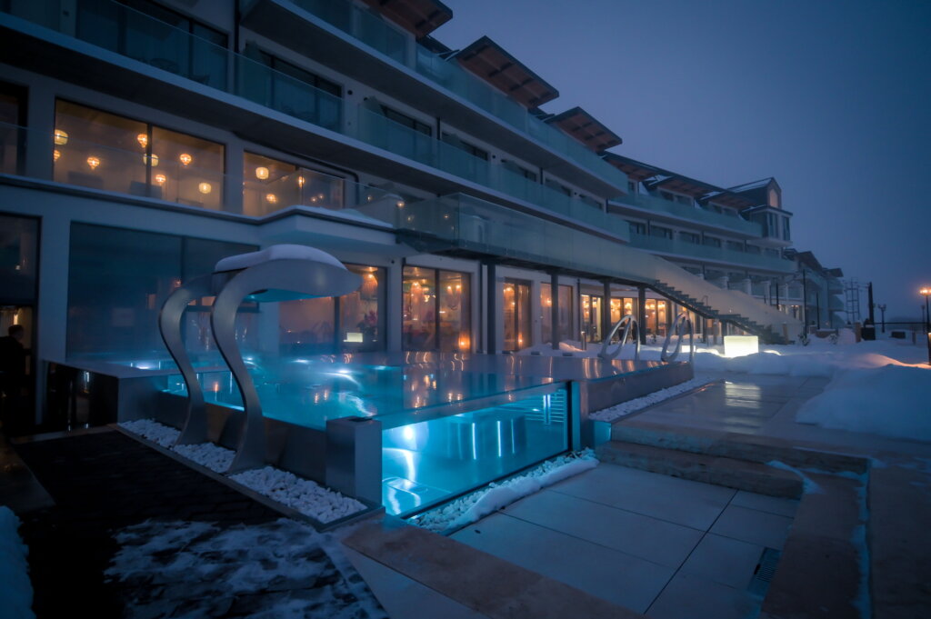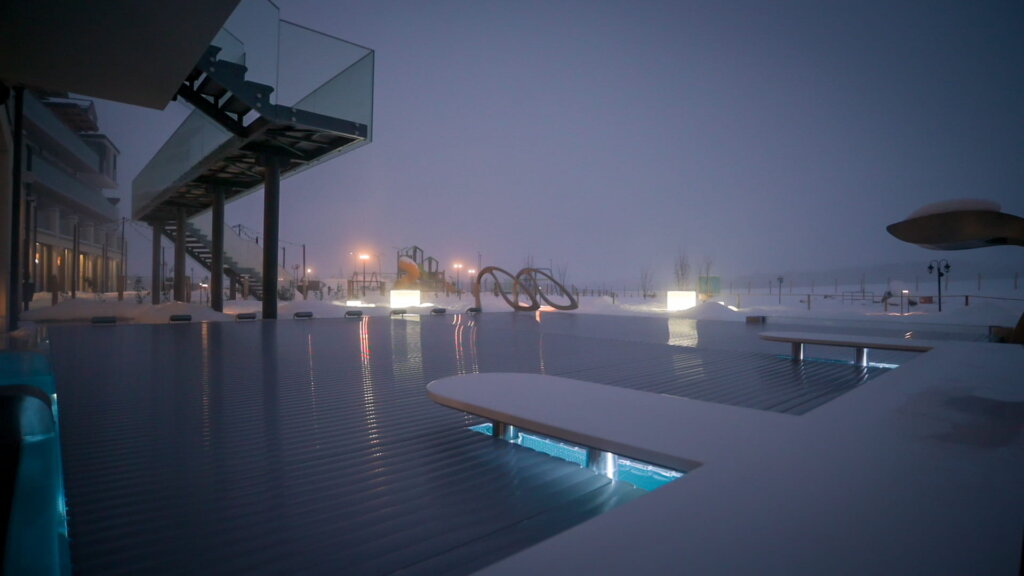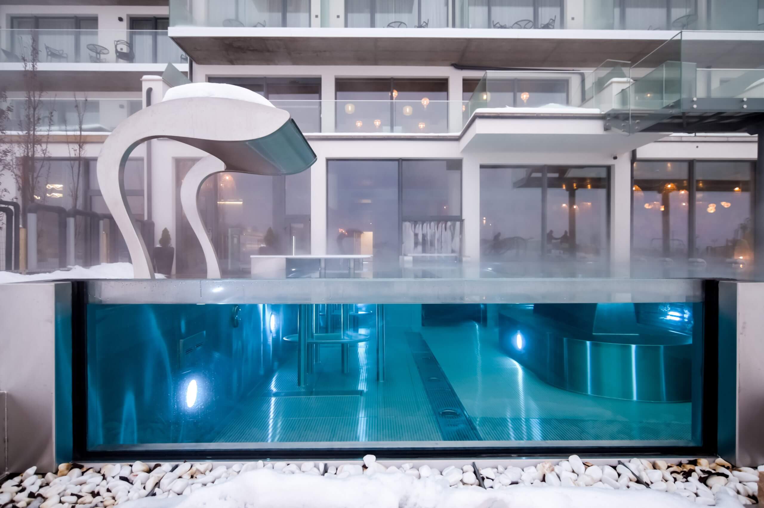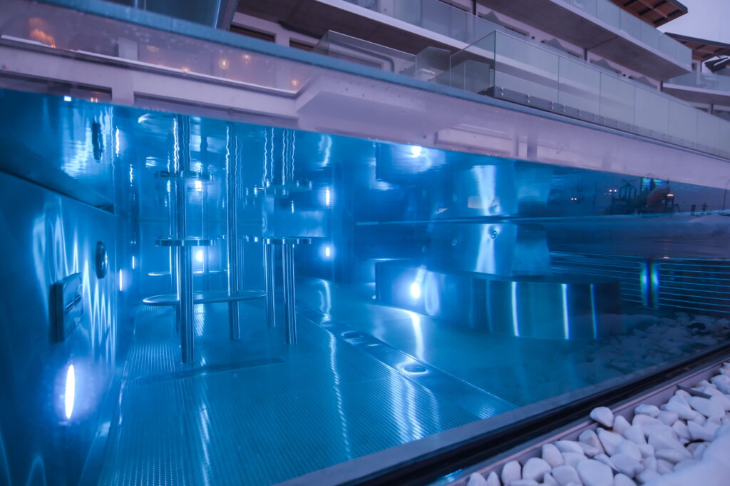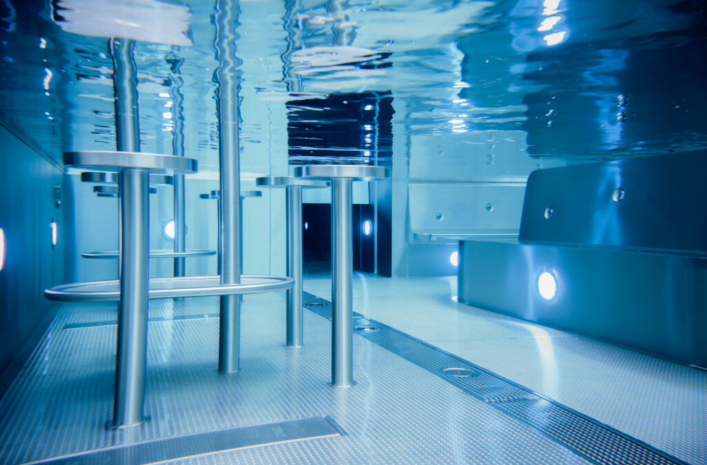 V areáli Lake Garden Tatralandia sme realizovali výnimočný relaxačný viacúčelový bazén s infinity prelivom, ktorý spája čistý dizajn, prémiové spracovanie a bohatú výbavu atrakcií. Celý koncept je navrhnutý tak, aby pôsobil maximálne elegantne, s minimom rušivých prvkov a s dôrazom na zážitok z vody, svetla a detailu. Dominantou bazéna je infinity preliv doplnený o dizajnové prekrytie žľabov – kamene osadené v nerezových profiloch, ktoré prirodzene zapadnú do celkovej architektúry. Zároveň sme mysleli aj na praktickú stránku prevádzky: vodná plocha je chránená podhladinovou PVC roletou, ktorá je šikovne skrytá pod ležadlom a schodiskom, takže pri používaní nijako nenarúša estetiku. Už pri vstupe do vody návštevník cíti, že ide o bazén navrhnutý „na mieru“ aj v detailoch: votknuté schodisko pôsobí ľahko a čisto, a dopĺňajú ho dizajnové nerezové madlá vyrobené na mieru - prvky, ktoré nie sú len technickým doplnkom, ale plnohodnotnou súčasťou dizajnu. Rovnako aj ďalšie komponenty (madlá, opierky hlavy, podstavce na poháre či detaily pri relax zónach) boli navrhnuté individuálne našimi dizajnérmi tak, aby ladili s charakterom miesta a zároveň vydržali intenzívnu prevádzku. Srdcom bazéna je premyslená relaxačná scenéria, ktorá ponúka viacero spôsobov oddychu. Komfort zabezpečujú rúrkové ležadlá a sedadlá so vzduchovou masážou, doplnené o opierky hlavy a praktický stojan na poháre. Voda pracuje s telom v rôznych režimoch: hydromasážne trysky zapustené do steny bazéna a dnová vzduchová perlička vytvárajú príjemnú masáž a uvoľnenie. Výrazným zážitkovým prvkom je ostrovček v strede bazéna – kompaktná relaxačná zóna, kde si viete dopriať vzduchovú aj hydromasáž. A keď máte chuť prepnúť z relaxu na spoločenský moment, plynulo nadviaže bar zóna s barovým pultom, 2 barovými stolíkmi a 8 barovými stoličkami – ideálne miesto na oddych na hladine aj mimo nej. Bazén je navrhnutý aj tak, aby ponúkol variabilitu podľa počasia či preferencií hostí: vďaka žalúzii na oddelenie vnútorného a vonkajšieho bazéna je možné pohodlne prejsť do vnútornej časti a užívať si relax v každom ročnom období. Emóciu a atmosféru dotvárajú vizuálne dominanty. Efektný vodopád / chrlič vody je zároveň výnimočný tým, že ide o prvok vytvorený umelcom – v praxi teda nie je len funkčnou atrakciou, ale aj umeleckým dielom, ktoré podčiarkuje výnimočnosť celej realizácie. Silný vizuálny podpis dopĺňa aj akrylátová stena integrovaná do nerezového telesa, ktorá dodáva bazénu ľahkosť a moderný charakter. Všetko dotvára podhladinové LED RGB-DMX osvetlenie, vďaka ktorému sa dá atmosféra priestoru meniť podľa nálady – od jemného ambientu až po výraznejšie farebné scény. Aj táto realizácia nesie náš Wonderwerk rukopis: dôraz na detail, funkčnosť, dizajn, a zároveň odolnosť riešení, ktoré majú vydržať a vyzerať výborne aj po rokoch.