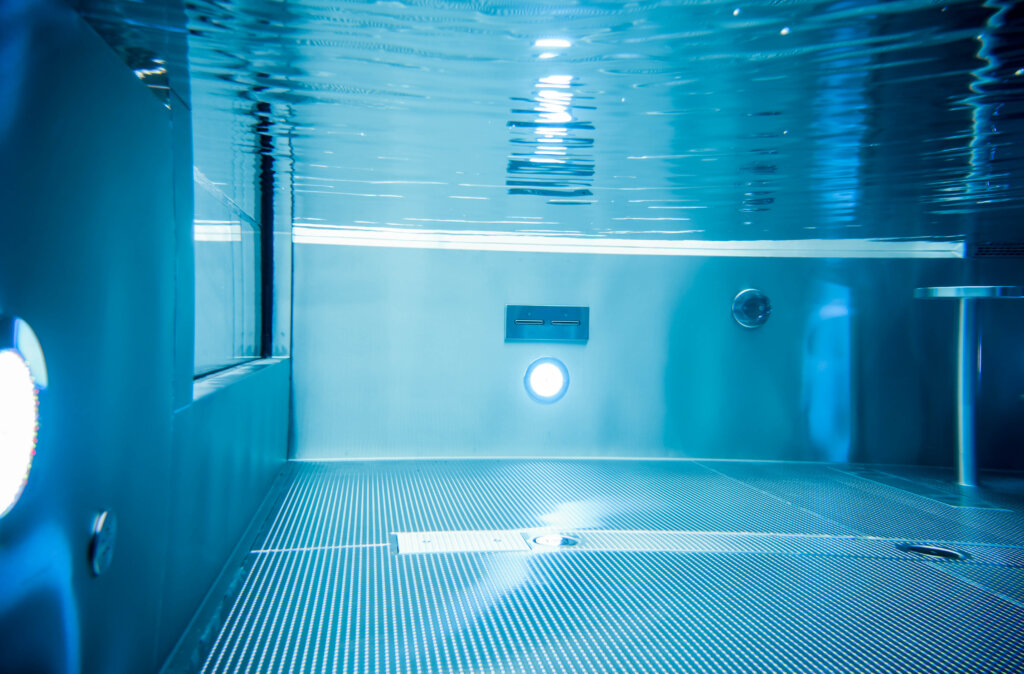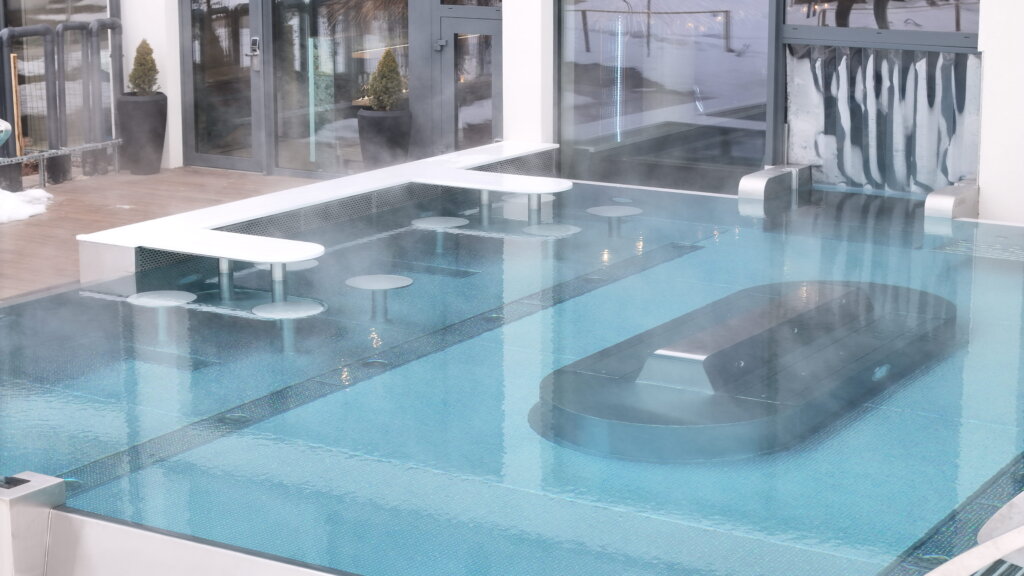 - 3 hydromasážne trysky zapustené do steny bazéna